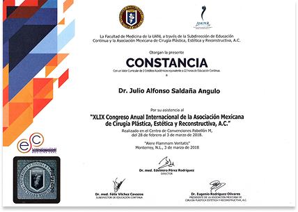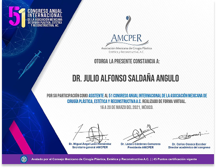 Dr. Julio Saldaña is endorsed by the most rigorous medical institutions, both nationally and internationally.